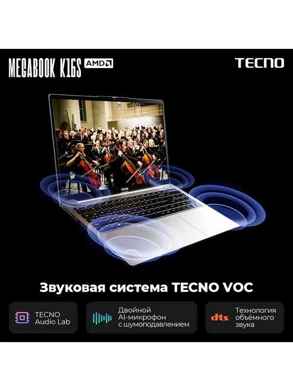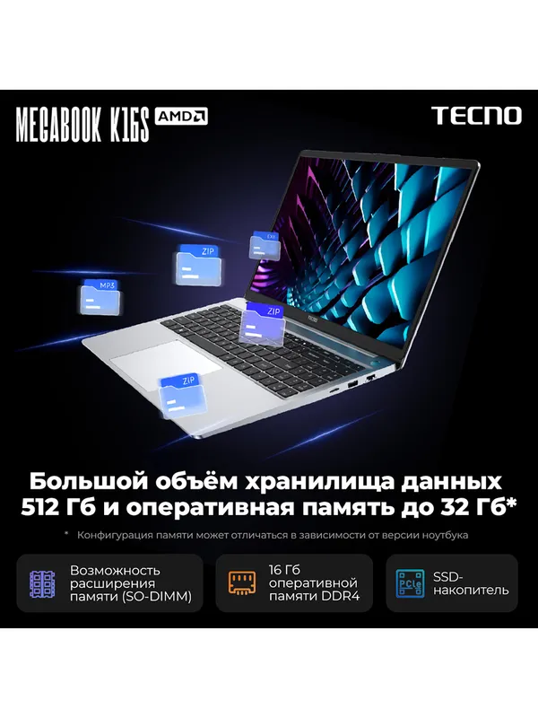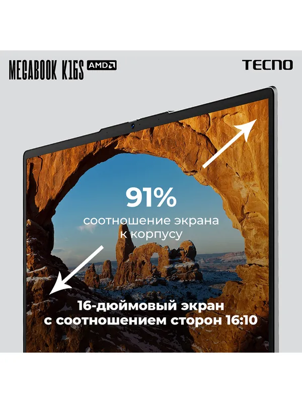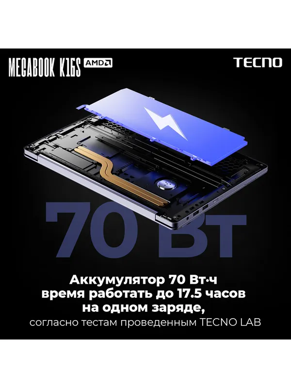 Ноутбук Tecno MegaBook K16SAA Core i5 13420H 16Gb SSD1Tb Intel UHD Graphics 16" IPS WUXGA (1920x1200) Windows 11 Home grey WiFi BT Cam 6060mAh (710033