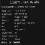 Ноутбук Gigabyte 16", AMD Ryzen 7 260, RAM 16 ГБ, SSD, NVIDIA GeForce RTX 5070 для ноутбуков (8 Гб), Без системы, черный, Русская раскладка