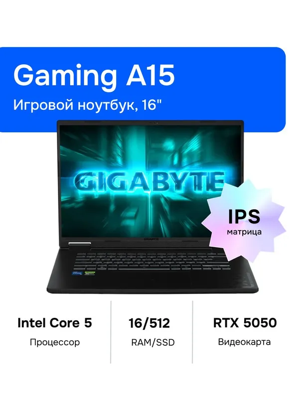 Ноутбук Gigabyte 16", Intel Core i5-13420H, RAM 16 ГБ, SSD, NVIDIA GeForce RTX 5050 для ноутбуков (8 Гб), Без системы, черный, Русская расклад