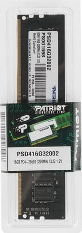 Оперативная память 16Gb 3200MHz Patriot PSD416G32002 Signature RTL PC4-25600 CL22 DIMM 288-pin 1.2В dual rank