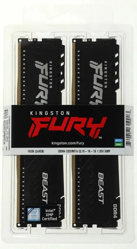 Оперативная память Kingston DDR4 DIMM 16GB Kit 2x8Gb KF432C16BBK2/16 PC4-25600, 3200MHz, CL16