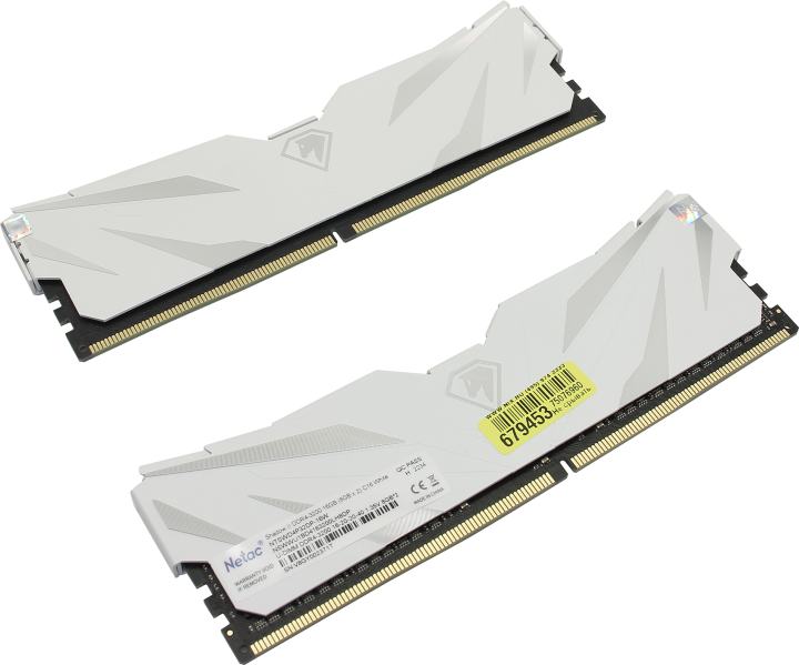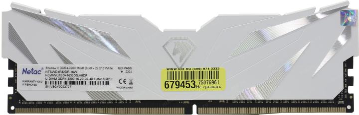 Модуль памяти Netac Shadow II DDR4-3200 16GB (8GB x 2) C16 White, 16-20-20-40, 1.35V, XMP, Радиатор