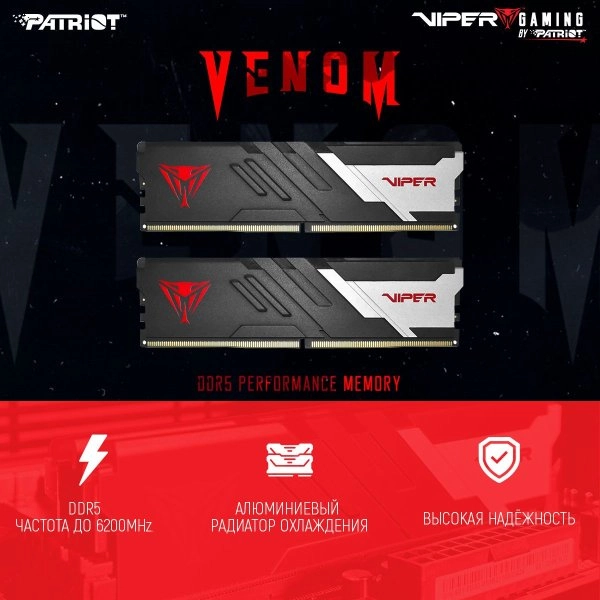 Оперативная память DDR5 2x32GB 6000MHz Patriot PVV564G600C36K Viper Venom RTL Gaming PC5-48000 CL36 DIMM 288-pin 1.35В с радиатором Ret