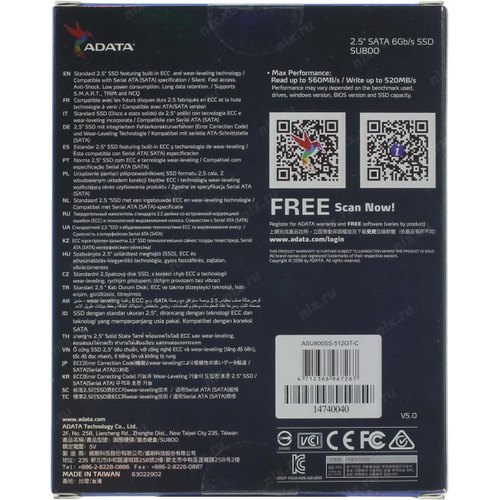Твердотельный накопитель (SSD) 512 Gb SATA 6Gb/s ADATA Ultimate SU800 <ASU800SS-512GT-C> 2.5" 3D TLC