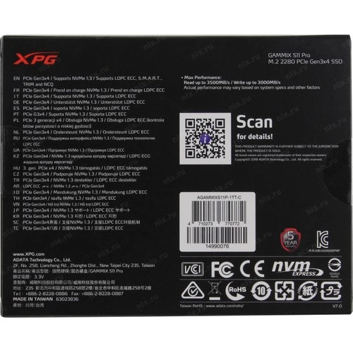 Твердотельный накопитель (SSD) A-Data PCI-E 3.0 x4 1Tb AGAMMIXS11P-1TT-C S11 Pro M.2 2280