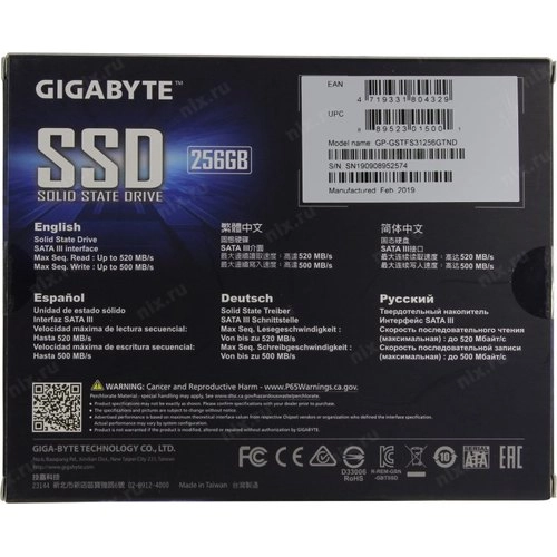 Твердотельный накопитель (SSD) 256 Gb SATA 6Gb/s GIGABYTE <GP-GSTFS31256GTND> 2.5" TLC