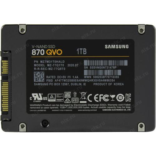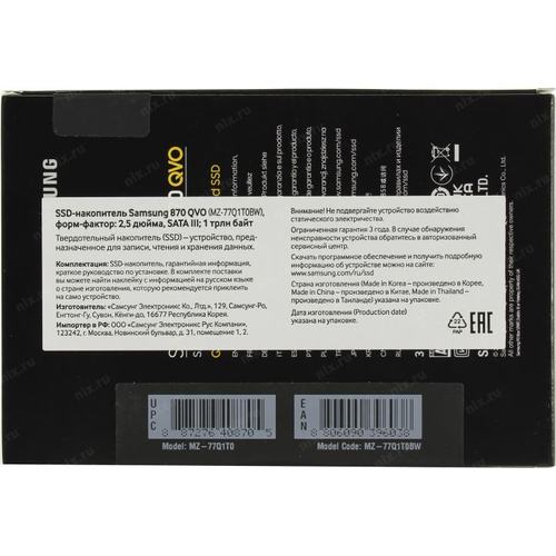 Твердотельный накопитель (SSD) 1 Tb SATA 6Gb/s Samsung 870 QVO Series <MZ-77Q1T0BW> (RTL) 2.5" V-NAND 4bit-MLC