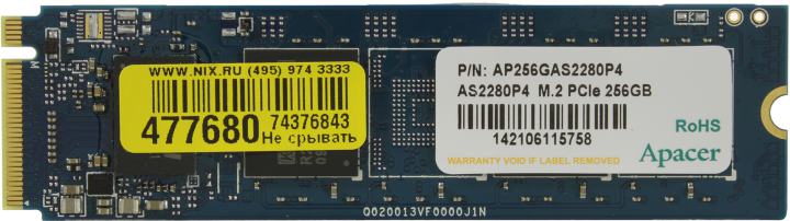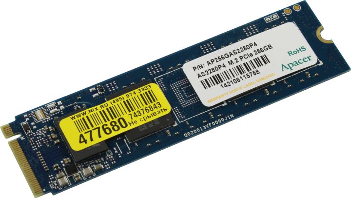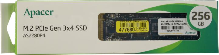 Твердотельный накопитель (SSD) M.2 2280 256GB Apacer AS2280P4 Client SSD AP256GAS2280P4-1 PCIe Gen3x4 with NVMe, 1800/1100, IOPS 150/240K, MTBF 1.5M,