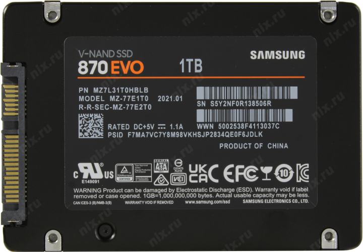 Твердотельный накопитель (SSD) 1 Tb SATA 6Gb/s Samsung 870 EVO <MZ-77E1T0B(W/EU)> (RTL) 2.5" V-NAND 3bit-MLC