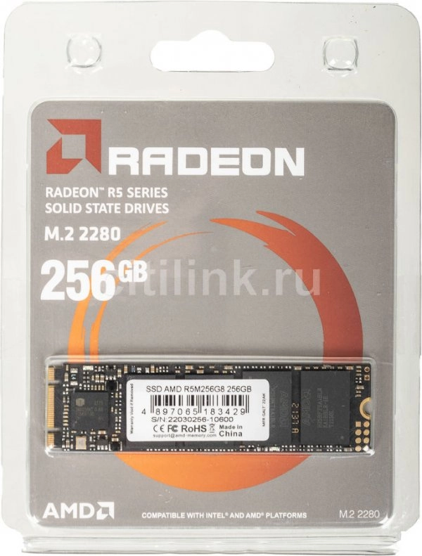 Твердотельный накопитель (SSD) M.2 2280 256GB AMD Radeon R5 Client SSD R5M256G8 SATA 6Gb/s, 3D TLC, RTL (183429)