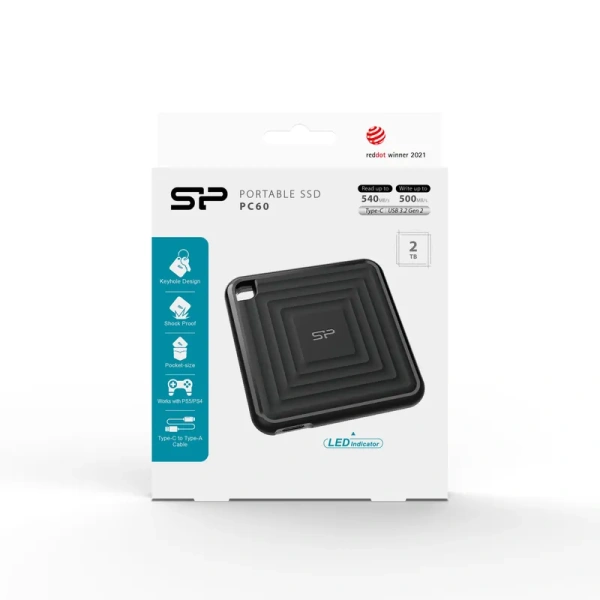 Внешний твердотельный накопитель (SSD) Silicon Power USB-C 2TB SP020TBPSDPC60CK PC60 1.8" черный