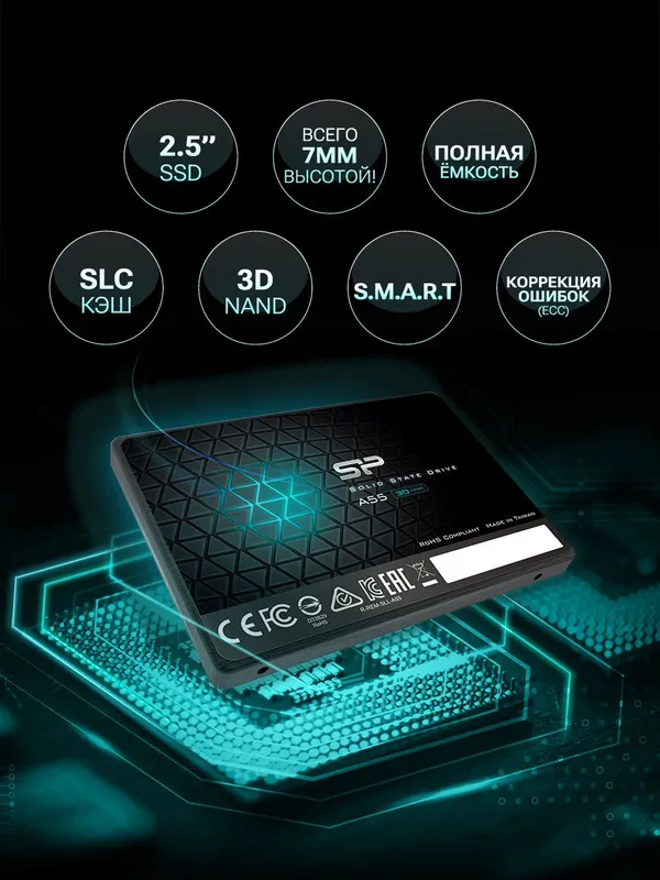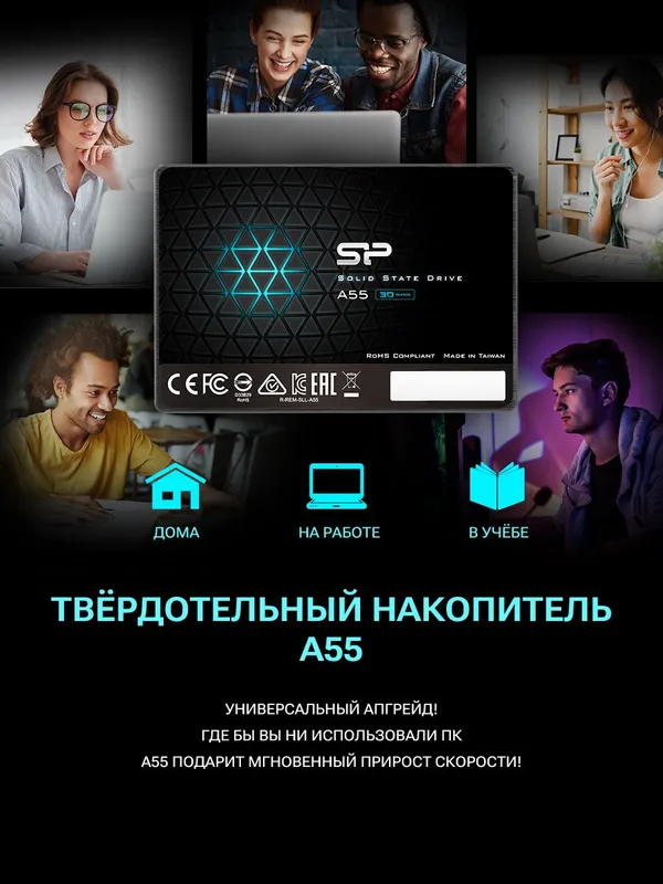 Твердотельный накопитель (SSD) 2TB Silicon Power A55, 2.5", SATA III [R/W - 500/450 MB/s] TLC