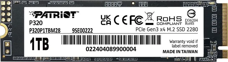Твердотельный накопитель (SSD) Patriot Memory 1 ТБ внутренний P320 M.2 PCI-E 3.0 (P320P1TBM28)