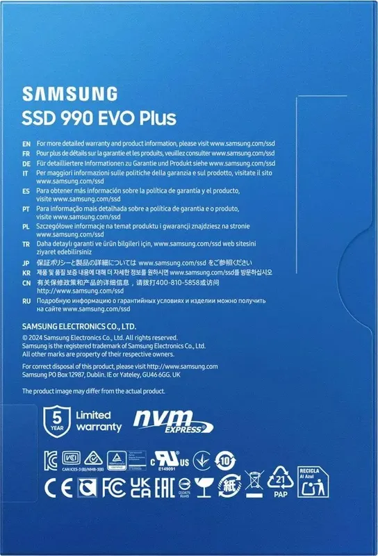 Твердотельный накопитель (SSD) Samsung 990 EVO Plus 2TB (MZ-V9S2T0BW), M.2, PCI-E 5.0 x2/4.0х4, V-NAND TLC [R/W - 7250/6300 MB/s]