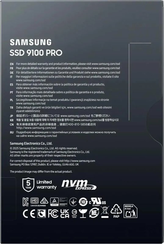 Твердотельный накопитель (SSD) 2TB Samsung 9100 PRO, M.2, PCI-E 5.0 x4, TLC 3D NAND [R/W - 14800/13400 MB/s]