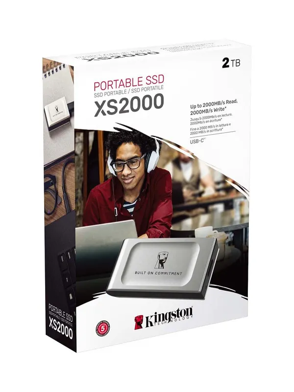Внешний твердотельный накопитель (SSD) Kingston XS2000 BOC 2000 ГБ -диск, USB 3.2, SXS2000/2000GA, серебристый
