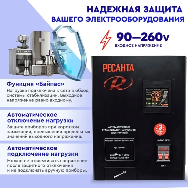 Стабилизатор напряжения Ресанта СПН-13500 электронный однофазный серый