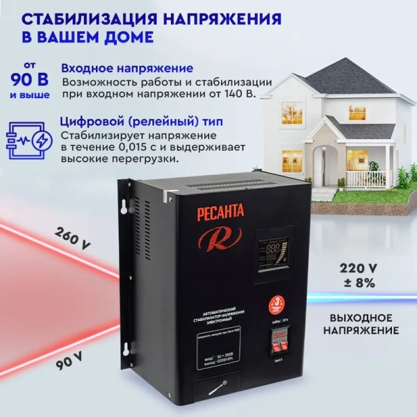 Отклонение в стабилизации напряжения ±: 8; Тип сети: однофазная