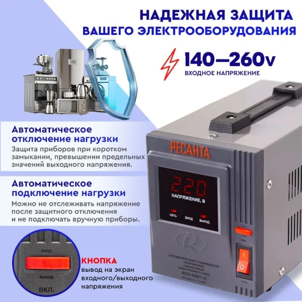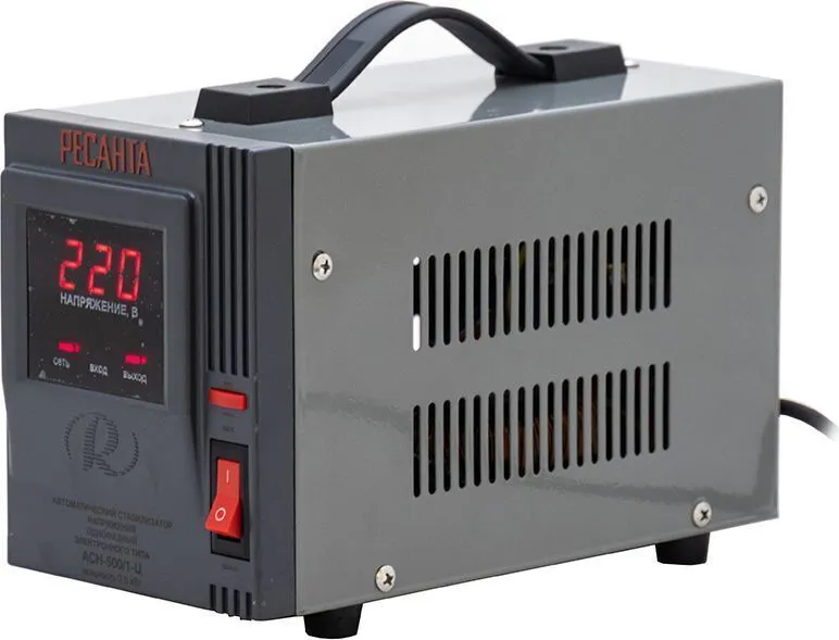 Стабилизатор напряжения Ресанта АСН- 500/1-Ц 63/6/1 {220В±8%, Габариты 212х110х134, Вес 3 кг}