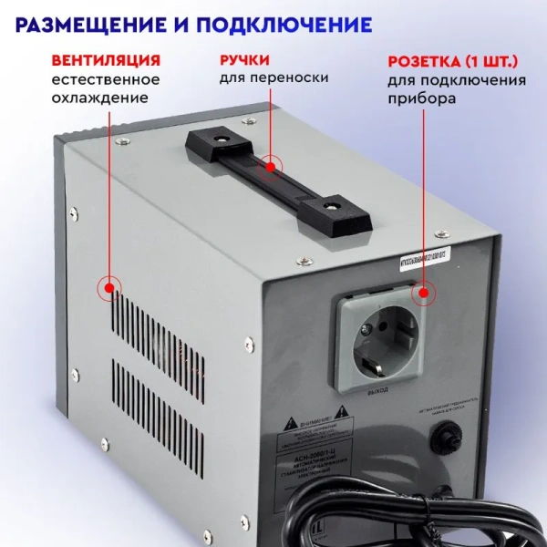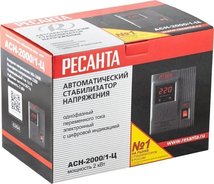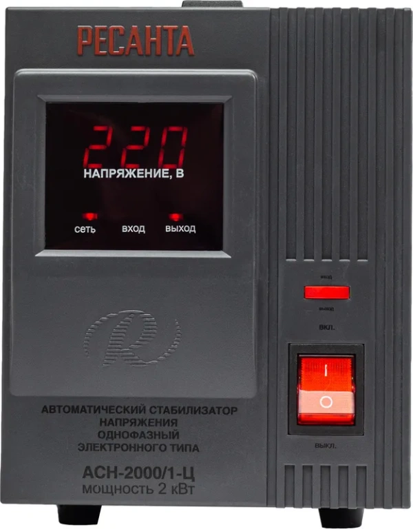 Стабилизатор напряжения Ресанта АСН-2 000/1-Ц 63/6/4 {220В±8%, Габариты 237х140х170, Вес 5 кг} 4607076037655