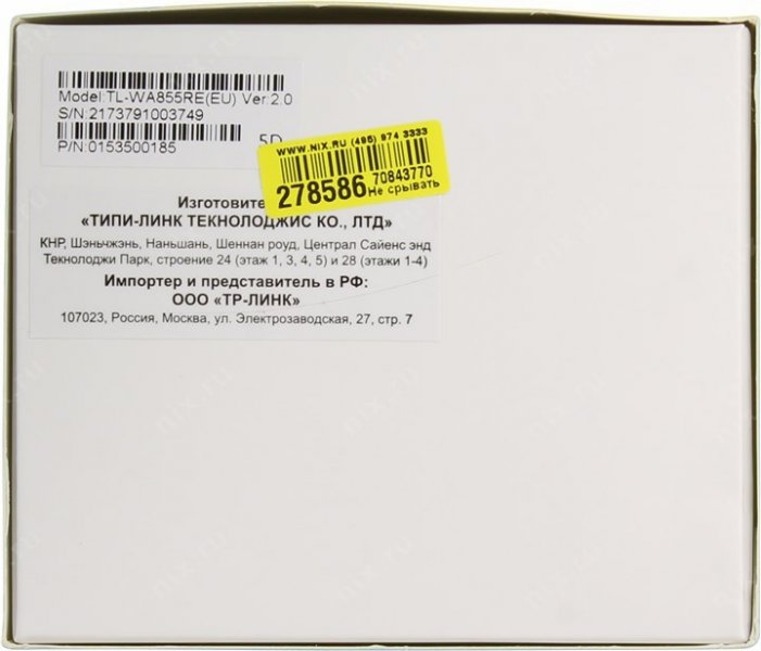 Репитер TP-LINK <TL-WA855RE> Wireless N Range Extender (1UTP 100Mbps, 802.11b/g/n, 300Mbps)