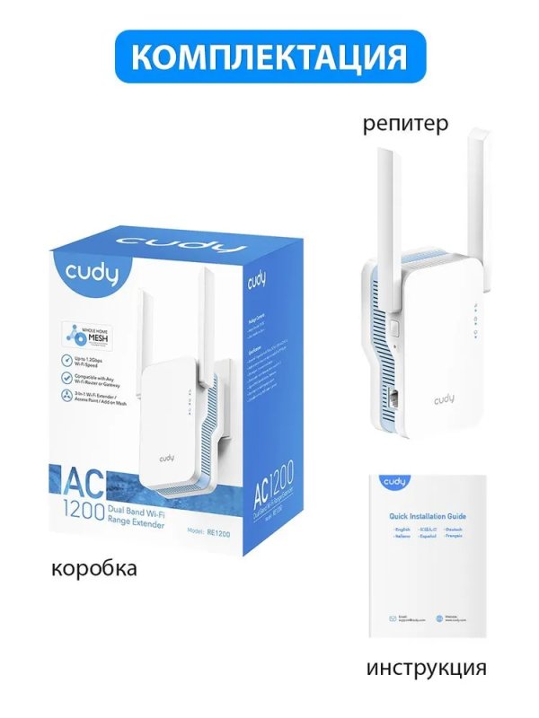 Репитер Cudy RE1200 AC1200 10/100BASE-TX/Wi-Fi белый