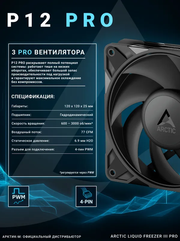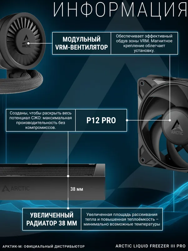 Система водяного охлаждения Arctic <ACFRE00180A> Liquid Freezer III Pro 360 (4пин, 1700/1851/AM4/AM5, 600-3000об/мин, вод. охл.)