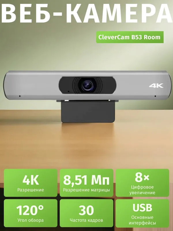 Веб-камера CleverCam B53 Room (4K, 8x, USB 3.0, HDMI, ePTZ, Tracking)