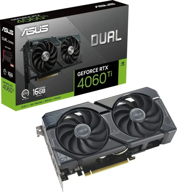 Видеокарта Asus PCI-E 4.0 DUAL-RTX4060TI-16G NVIDIA GeForce RTX 4060TI 16144 Мб 128bit GDDR6 2535/18000 HDMIx1 DPx3 HDCP Ret
