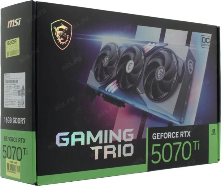Видеокарта 16144 Мб <PCI-E> GDDR7 MSI RTX 5070 Ti 16G GAMING TRIO OC PLUS (RTL) HDMI+3xDP <GeForce RTX5070Ti>