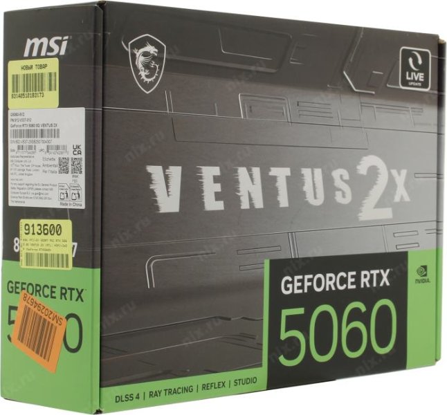 Видеокарта MSI PCI-E 5.0 RTX 5060 8G VENTUS 2X NVIDIA GeForce RTX 5060 8Gb 256bit GDDR7 2497/28000 HDMIx1 DPx3 HDCP Ret