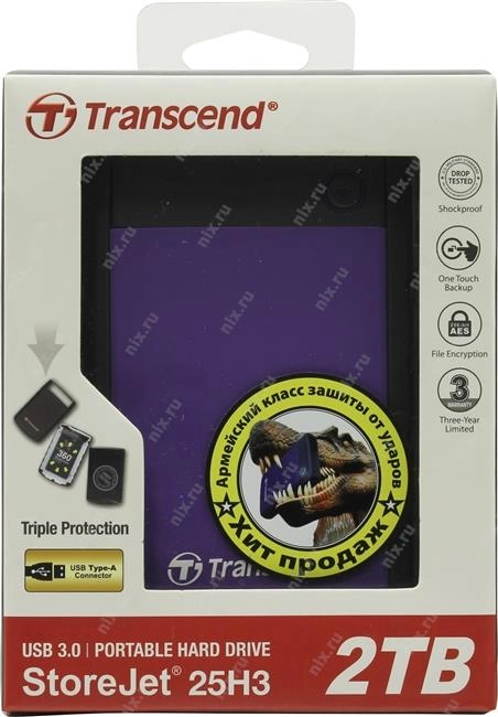 Внешний жесткий диск Transcend StoreJet 25H3 <TS2TSJ25H3P> USB3.0 Portable 2.5" HDD 2Tb EXT (RTL)