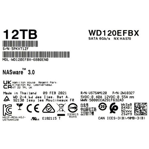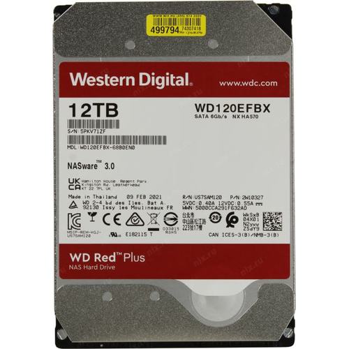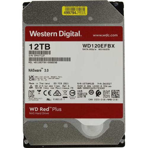 Жесткий диск 12 Тб SATA 6Гб/s Western Digital Red Plus <WD120EFBX> 3.5" 7200rpm 256Mb