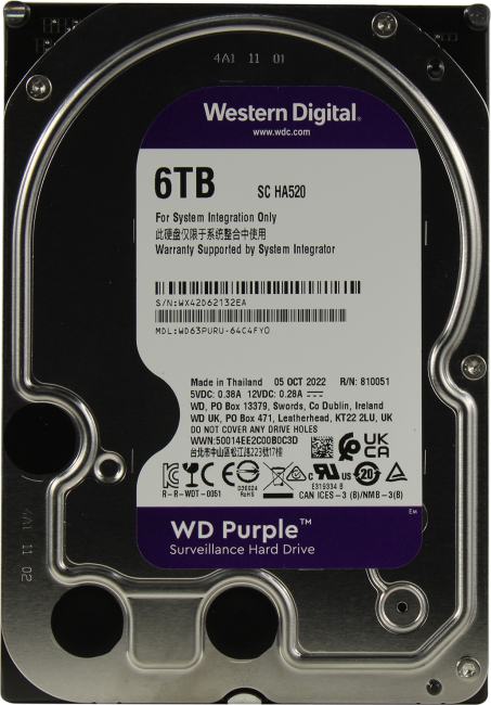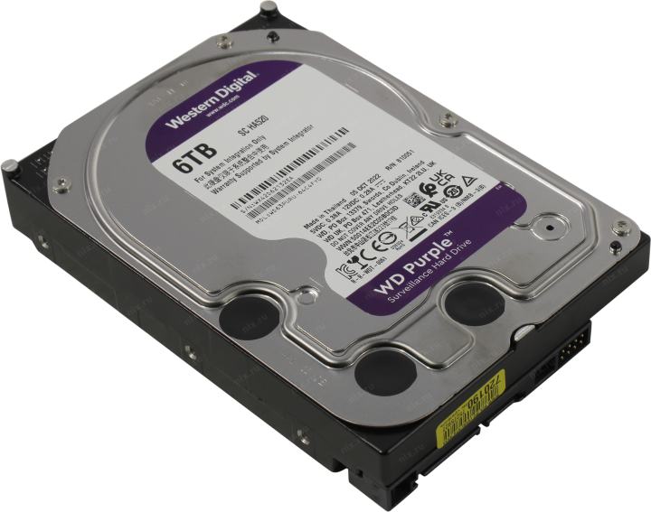 Жесткий диск 6 Тб SATA 6Гб/s Western Digital Purple <WD63PURU> 3.5" 256 Mb, 5400 rpm